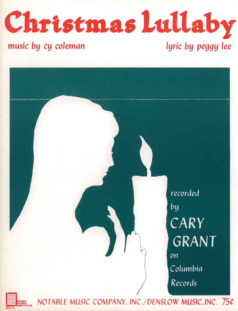 Cary Grant was one of the most versatile and beloved leading men in Hollywood history, but by his own admission he was no singer. He developed a friendship with Peggy beginning in the 1960s and one unusual byproduct was his first 45 r.p.m. single, on Columbia Records, featuring “Christmas Lullaby” (Peggy Lee-Cy Coleman) on one side and “Here’s to You” (Peggy Lee-Richard Hazard) on the reverse. Cary’s “Lullaby,” which he dedicated to his newborn daughter Jennifer, is largely recited but he sings occasionally. Peggy didn’t record this song. Petula Clark recorded it for a 2009 Christmas collection.