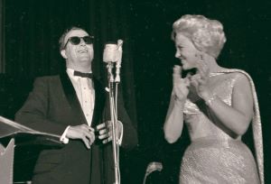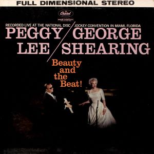In May of 1959, Peggy Lee teamed with popular English jazz pianist George Shearing and his quintet in the ballroom of the Americana Hotel in Miami, Florida to record a live album before a convention audience filled with radio disc jockeys and other music industry professionals. The album, Capitol’s Beauty and the Beat!, was presented as a live recording but – as was not uncommon in the early LP era – actually consisted of studio recordings (including spoken introductions) enhanced by applause. In this case it was done out of necessity. Technical flaws with most of the live recordings forced Lee, Shearing and quintet (Ray Alexander, vibes; Ray Mosca, drums; Armando Peraza, congas, percussion; Carl Pruitt, bass; Toots Thielemans, guitar) into the studio the following month to recreate their performance for the album, which had already been promised to the conventioneers as a souvenir. This rare recording of “Always True to You in My Fashion” is taken from the actual Americana performance, where its notably slower tempo gives Lee a greater opportunity to draw out Cole Porter’s suggestive lyrics. The song originated in Porter’s theatrical masterpiece, 1948’s Kiss Me, Kate, where it was introduced by Lisa Kirk; Ann Miller sang it in the 1953 film version. Others who recorded “Always True” in its first decades include Pearl Bailey, Blossom Dearie, Ella Fitzgerald, Eydie Gorme, Eartha Kitt, Julie London, Della Reese, Dinah Shore, Keely Smith and Jo Stafford. The Lee-Shearing Beauty and the Beat! album reached #19 on Billboard’s album charts in late 1959. Japanese and American CD reissues in the early 2000s offered the studio recordings without the added effects.