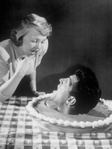 The 1948 comic duet “You Was,” with all its cleverly botched noun-verb agreement, was co-written by Sonny Burke and Paul Francis Webster, who that same year collaborated on a very different song that became a major entry in the Peggy Lee songbook: “Black Coffee.” Burke also became a songwriting collaborator of Lee’s with 1952’s “Sans Souci” and all the songs from Walt Disney’s Lady and the Tramp (1955). Lee’s duet partner was an up-and-comer named Dean Martin, in only his third session for Capitol, and this was Lee’s and Martin’s only pairing on record. Recorded in December 1948, this was Lee’s first time in a Capitol studio in nearly a year due to an American Federation of Musicians recording ban that sidelined most singers. Capitol’s ad promotions for the song in 1949 included a surreal photo of Lee standing alongside Martin’s head as it emerges from a pumpkin pie. The “You Was” single’s flipside was a Lee solo on “Someone Like You” from the movie My Dream Is Yours. Other labels competed with Capitol on the same duet: Columbia with Buddy Clark and Doris Day, Decca with Patty Andrews and Bob Crosby, and Mercury with Vic Damone and Patti Page. Lee sang duet versions on radio in 1949 with Martin as well as Clark and Haymes, all in episodes of The Chesterfield Supper Club, for which she served as a host; and with Bing Crosby on his radio show. Martin later recorded Lee’s songs “It’s a Good Day,” “Mañana” and “Where Can I Go Without You.” Lee appeared on ten episodes of Martin’s musical-variety show between 1965 and 1971, dueting with Martin each time but unfortunately never revisiting “You Was.”
