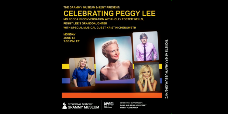 The GRAMMY Museum and 92NY are thrilled to host a special event celebrating the legendary Peggy Lee and the 60th anniversary of her I’m a Woman album, featuring a conversation with Lee’s granddaughter, Holly Foster Wells, and Emmy®-winning correspondent for CBS Sunday Morning Mo Rocca. Through stories and rare performance clips, the audience will get a glimpse into the personal life of the acclaimed singer-songwriter and what drove her trailblazing seven-decade career. The evening will conclude with a musical tribute from Emmy® and Tony® Award-winning actress and singer, Kristin Chenoweth.