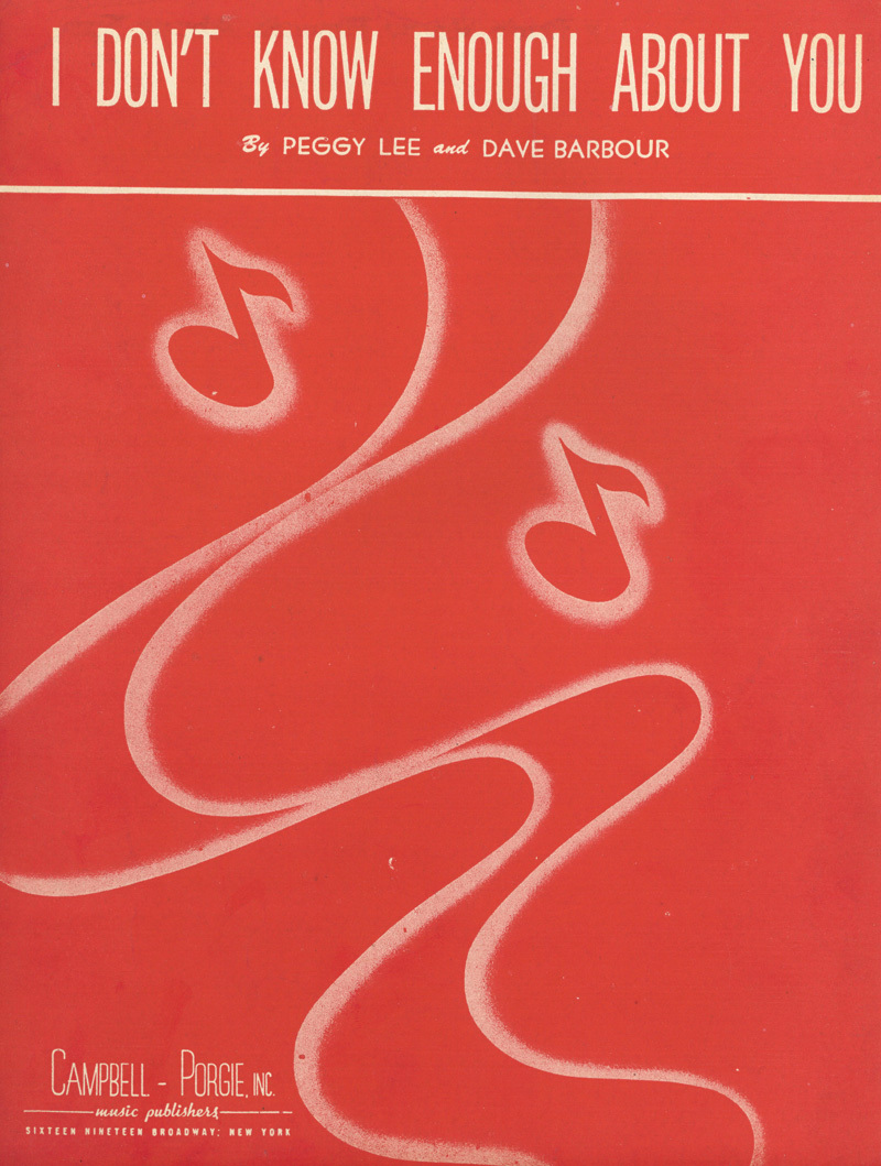 Describing her development as a songwriter in her autobiography, Peggy wrote that “it was Johnny Mercer who felt the songs had strong potential. He was right. When I was working on ‘I Don’t Know Enough About You’ he made some wonderfully constructive comments. He advised me to tear it all apart and do it over again. It really was fun reconstructing it, and it was a vast improvement. That was probably one of my best instructions on construction – by a master.” This is one of six Lee lyrics selected by Robert Gottlieb and Robert Kimball for inclusion in their anthology Reading Lyrics (Pantheon Books, 2000).