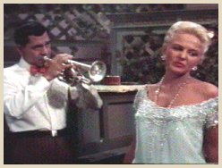 Pete Kelly’s Blues, starring Jack Webb, who also produced and directed, was the story of a nightclub trumpeter (Webb) who decides to take a stand against protection racketeers in Kansas, circa 1927. But it never quite made up its mind whether to be a musical or a melodrama, and is best remembered as an unusually violent (for 1955) gangster movie with a strong musical background, mostly composed of songs from the period but with a title number by Sammy Cahn and Ray Heindorf that continued to haunt the memory long afterwards. Peggy Lee as a fading singer who takes to drink was also in it; so were Janet Leigh, Edmond O’Brien, Andy Devine, Lee Marvin, Jayne Mansfield, Martin Milner and Ella Fitzgerald. (Hirschhorn)